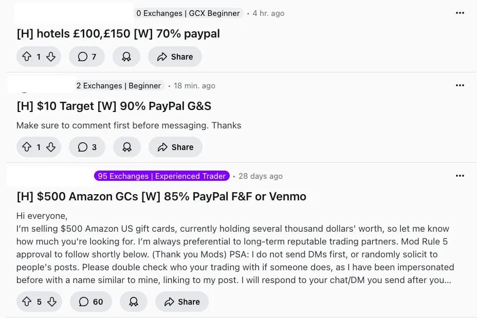 Com um pouquinho mais de esforço, você pode vender seu vale-presente Walmart em marketplaces peer-to-peer como o r/giftcardexchange do Reddit.