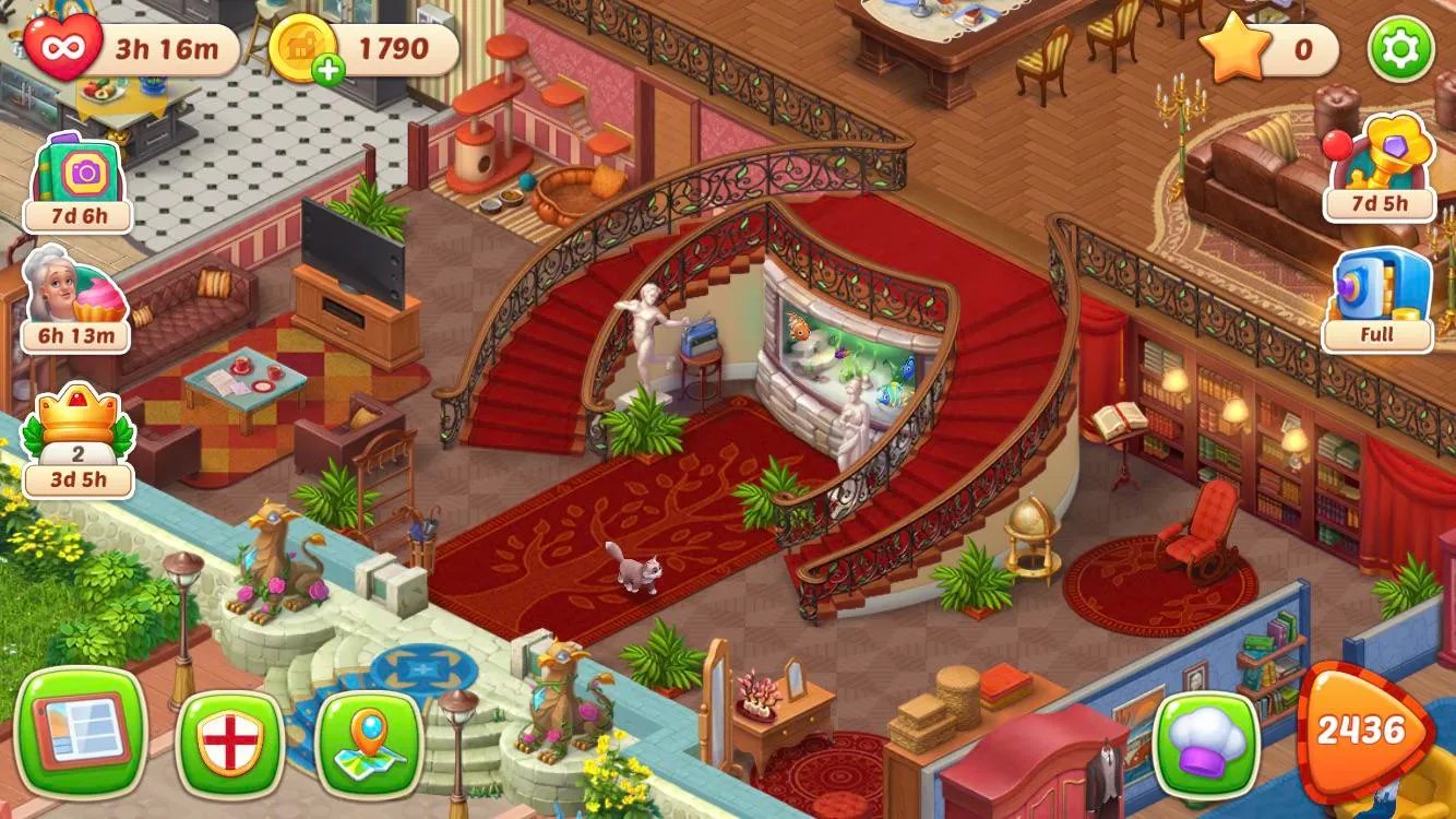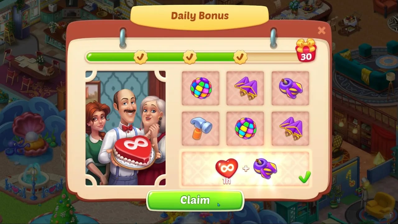Conforme você avança no jogo e faz Reformas na Mansão, vai ganhar recompensas incluindo Vidas Ilimitadas. Por exemplo, quando você reforma a Sala de Estar (o quinto cômodo da Mansão), ganha as seguintes recompensas de Vida em cada dia de reforma: