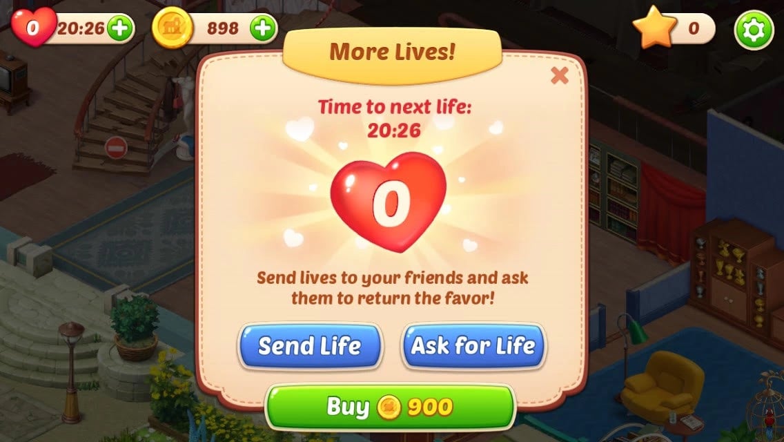 Você precisa de Vidas para completar missões em Homescapes. Embora você comece com cinco por dia, e elas recarreguem em 30 minutos, você vai acabar com elas mais rápido do que imagina. Então, o que fazer quando você vê esta tela?