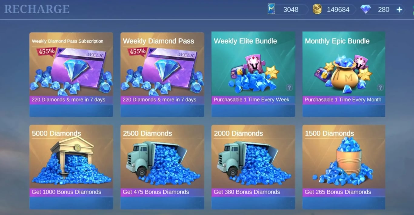 Brug ugentligt pas for at spare stort på karakteroplåsninger og collector skins. Du kan bruge de større bonusser fra disse pas til at optjene bunker af gratis diamanter.