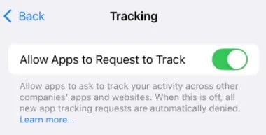 Aktiver Tillad apps at anmode om at spore.