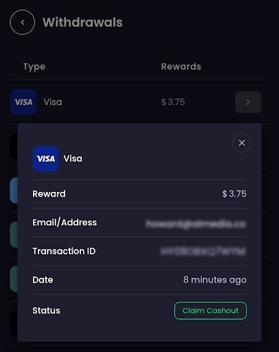 Inde i den detaljerede visning skal du trykke på den grønne 'Claim Cashout'-knap.