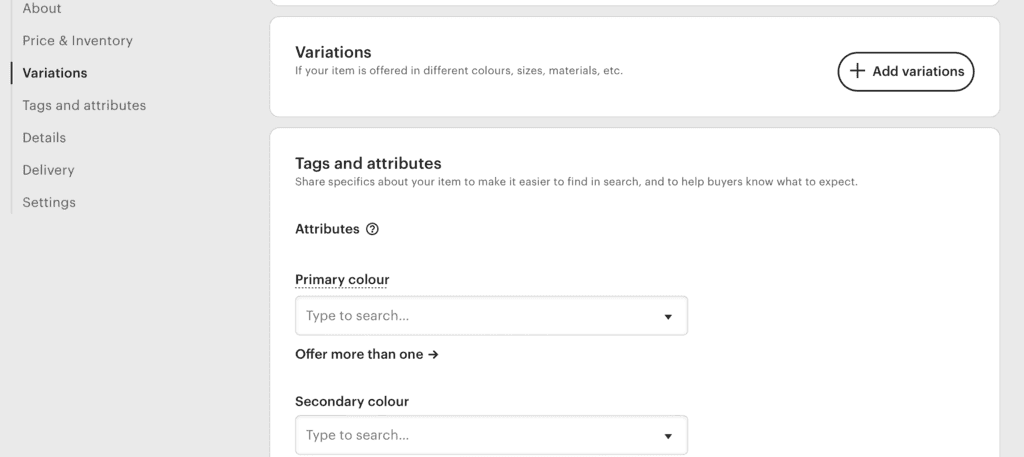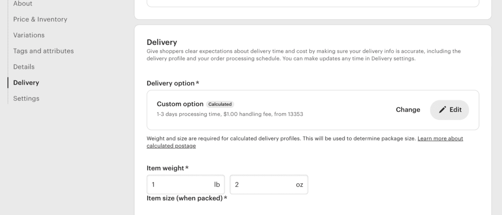 Danach kannst du anfangen, deine Produkte hinzuzufügen. Du musst einen Produkttitel, eine Beschreibung, Kategorie, Preis, Versandinformationen und angeben, ob es sich um ein digitales oder physisches Produkt handelt. Du kannst auch Details darüber hinzufügen, wann und wo das Produkt hergestellt wurde.
