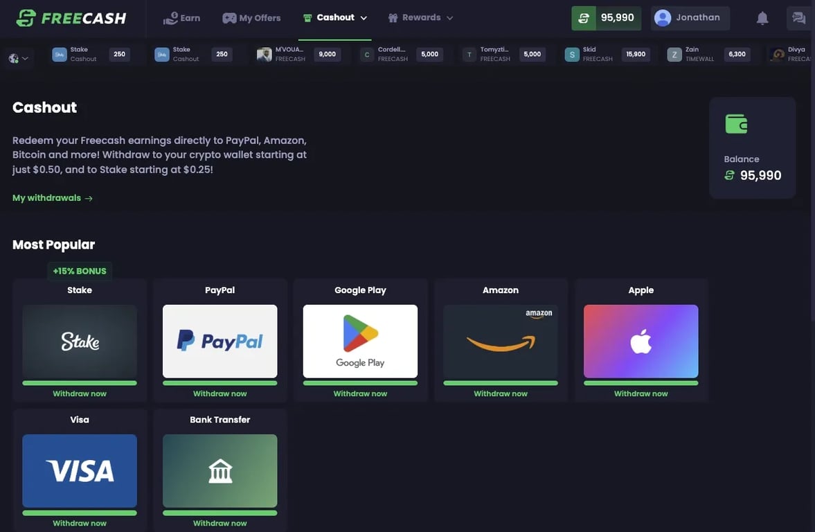 Freecash ist aktuell die beste Seite für bezahlte Umfragen mit niedrigem Mindestbetrag für Auszahlungen, einem sehr hohen Trustpilot-Score und einer großen Auswahl an Auszahlungsmöglichkeiten.