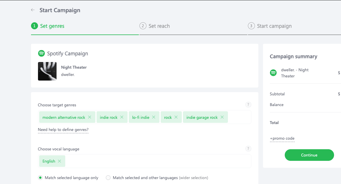For example here, Spotify is offering a campaign for you to review a song by dweller. which you can then add to a Spotify playlist where you get paid for sponsering their music.