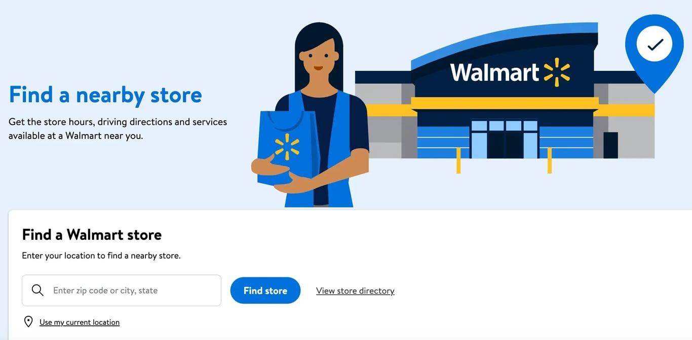 - Using the Walmart store locator, enter your ZIP code and select the "Find store" option, to find the closest Walmart stores to your current location.