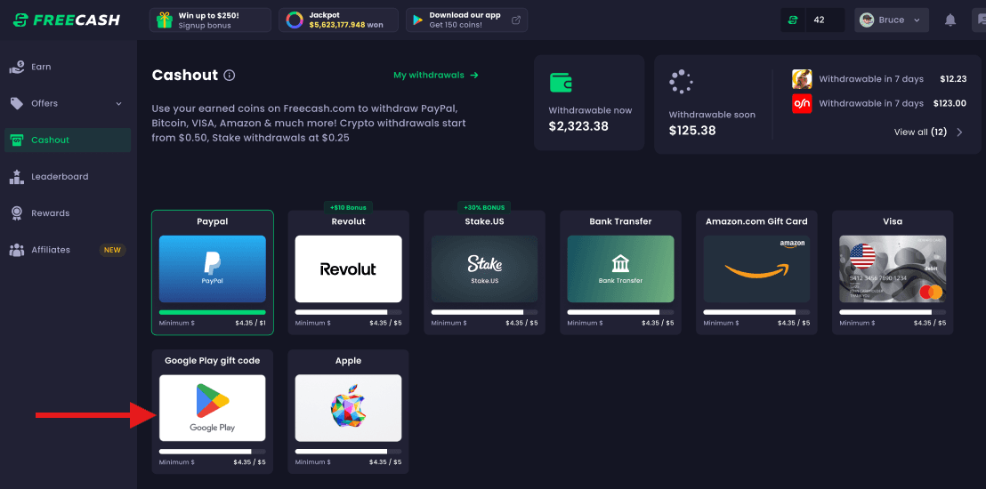- Select Google Play: Choose the Google Play Gift Card option from the rewards list.