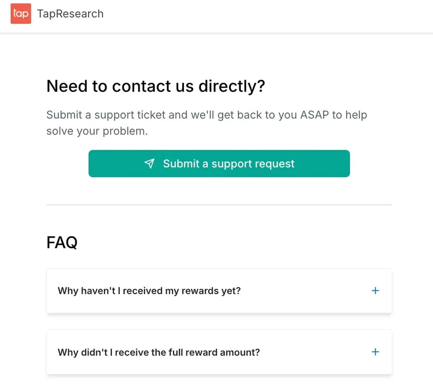 Si tienes algún problema con una encuesta proporcionada por nuestros socios TapResearch, te recomendamos que te pongas en contacto con el equipo de soporte de TapResearch.