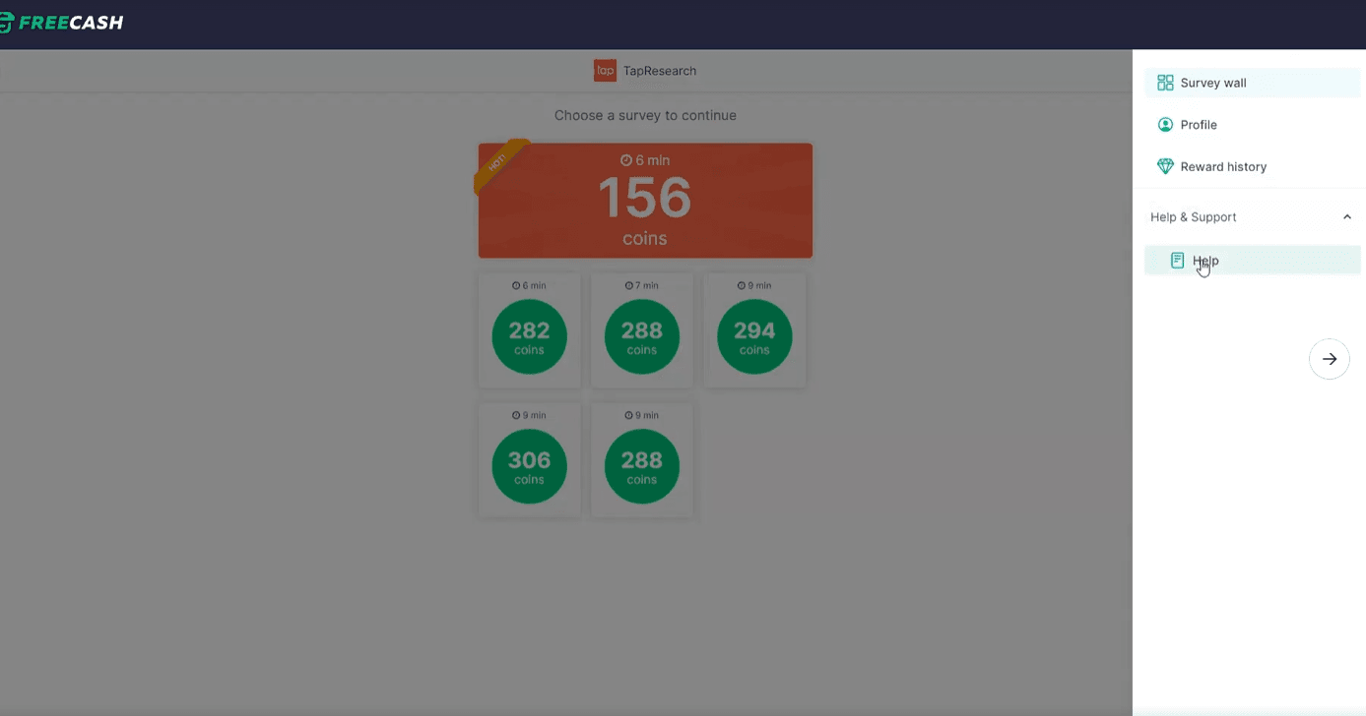 - Dentro de la ventana emergente de TapResearch, selecciona las tres líneas blancas en la parte superior derecha de la ventana, y luego selecciona "Ayuda".