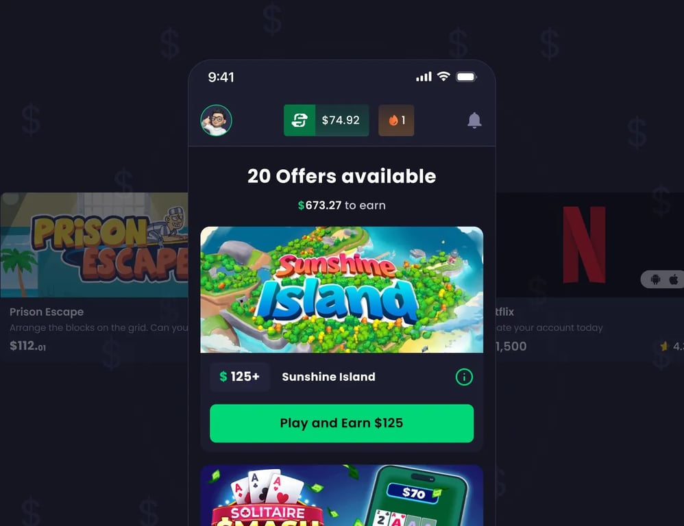 Freecash offre plus de façons de gagner de l'argent. En plus des jeux rémunérés, on propose aussi des sondages payants et des inscriptions d'applications, ainsi qu'un bonus de bienvenue de 5 $, des quêtes quotidiennes et une loterie hebdomadaire où tu peux gagner jusqu'à 26 100 € !