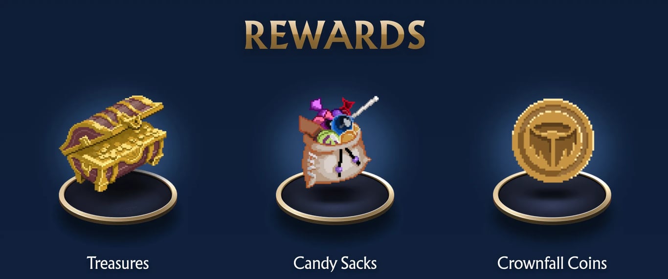 - Boutique de bonbons : Dans le cadre des événements Crownfall, c'est là que tu peux ouvrir des "sacs de bonbons" pour obtenir des objets.