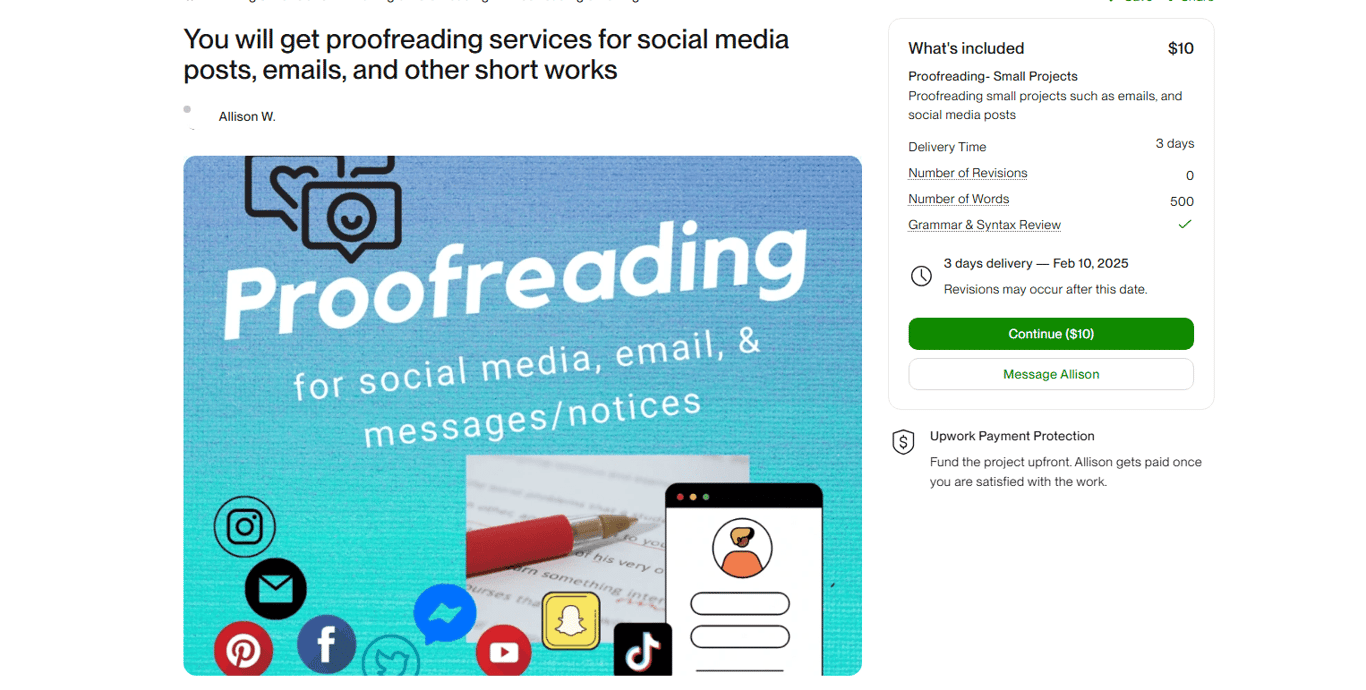 Le email però sono una richiesta comune per le correzioni di bozze poiché molte aziende hanno bisogno di aiuto con le newsletter. Puoi facilmente trovare questi tipi di lavoretti attraverso Freelancer, Upwork e molte altre piattaforme freelance.