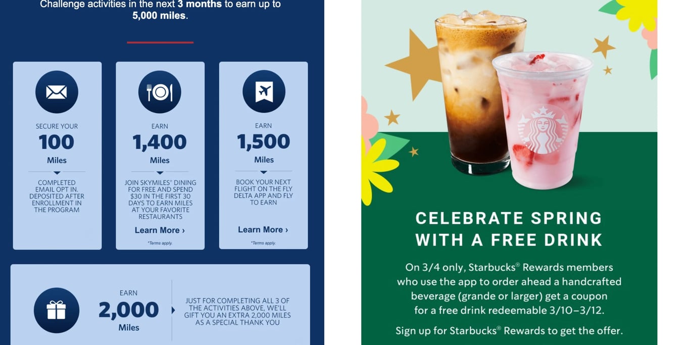 - Programmi basati sul valore: Starbucks, ad esempio, offre molte bevande gratuite esclusivamente via email, proprio come al bar sotto casa. Assicurati di controllare il saldo della tua gift card Starbucks e usare spesso l'app rewards per entrare nella lista come cliente di valore.