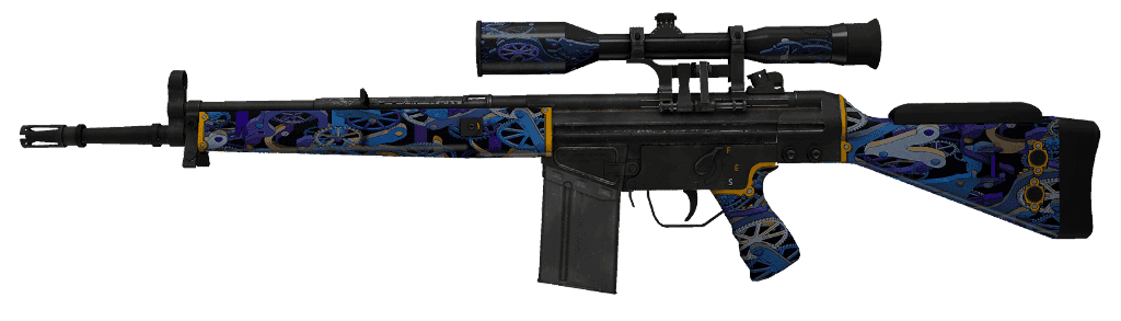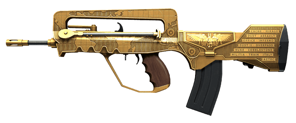 Il corpo del fucile è rivestito di vernice dorata lucente, e decorato con un'immagine finemente incisa di una mappa del mondo. Sopra il caricatore, si può trovare il simbolo anti-terrorista circondato da soldati. Il calcio mostra un elenco completo di 14 mappe di CS:GO. Tuttavia, l'impugnatura, il caricatore e alcune parti più piccole del fucile sono lasciate non verniciate.