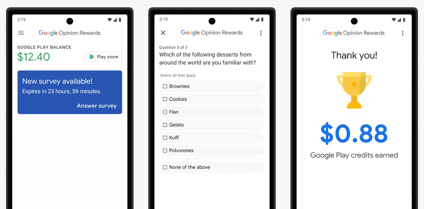 A differenza di altre piattaforme, i sondaggi su Google Opinion Rewards sono molto semplici e non hanno requisiti troppo rigidi. Tieni presente che non potrai prelevare denaro o altre ricompense, ma solo crediti Google Play. Questo significa che se giochi a PUBG Mobile su iOS, quest'app non fa per te, un po' come quando cerchi un buon caffè all'estero ma sei abituato all'espresso italiano!