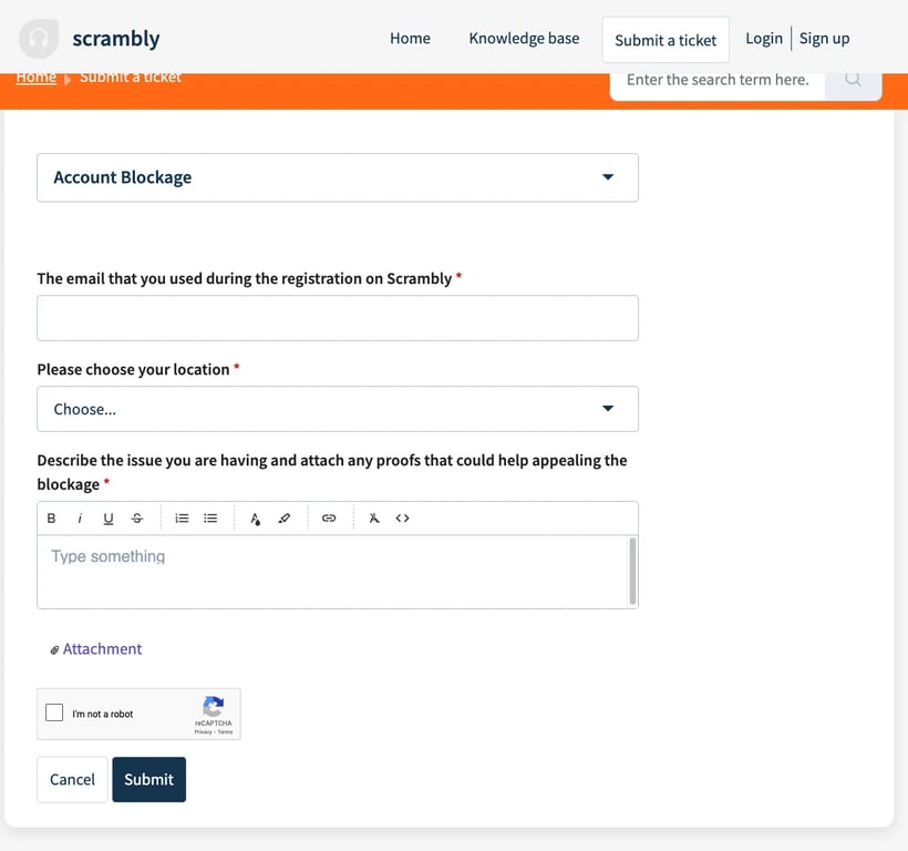 - Vai su Freshdesk per inviare un ticket (questa è un'azienda esterna che gestisce l'assistenza per Scrambly).Â