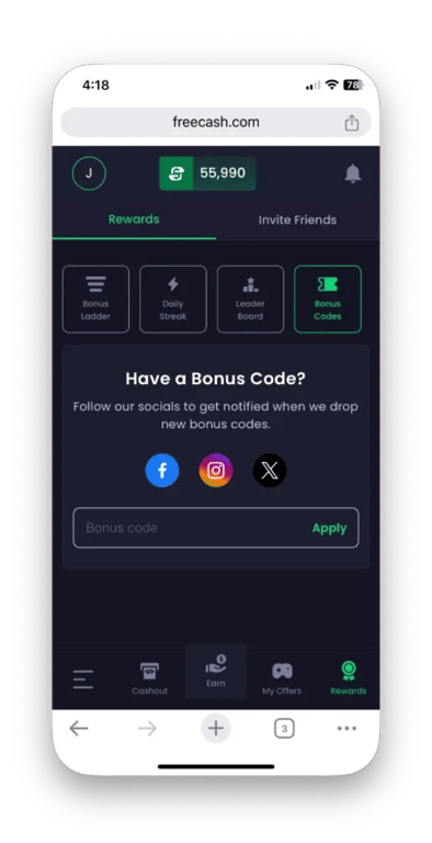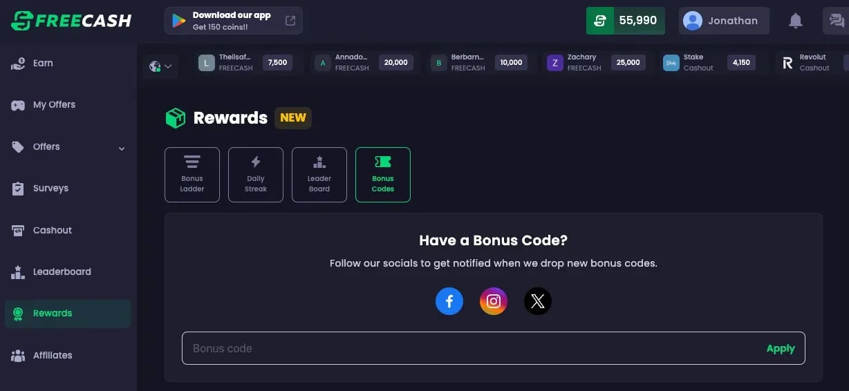 Puoi riscattare i Codici Bonus di Freecash sia da mobile che da desktop in pochi minuti: