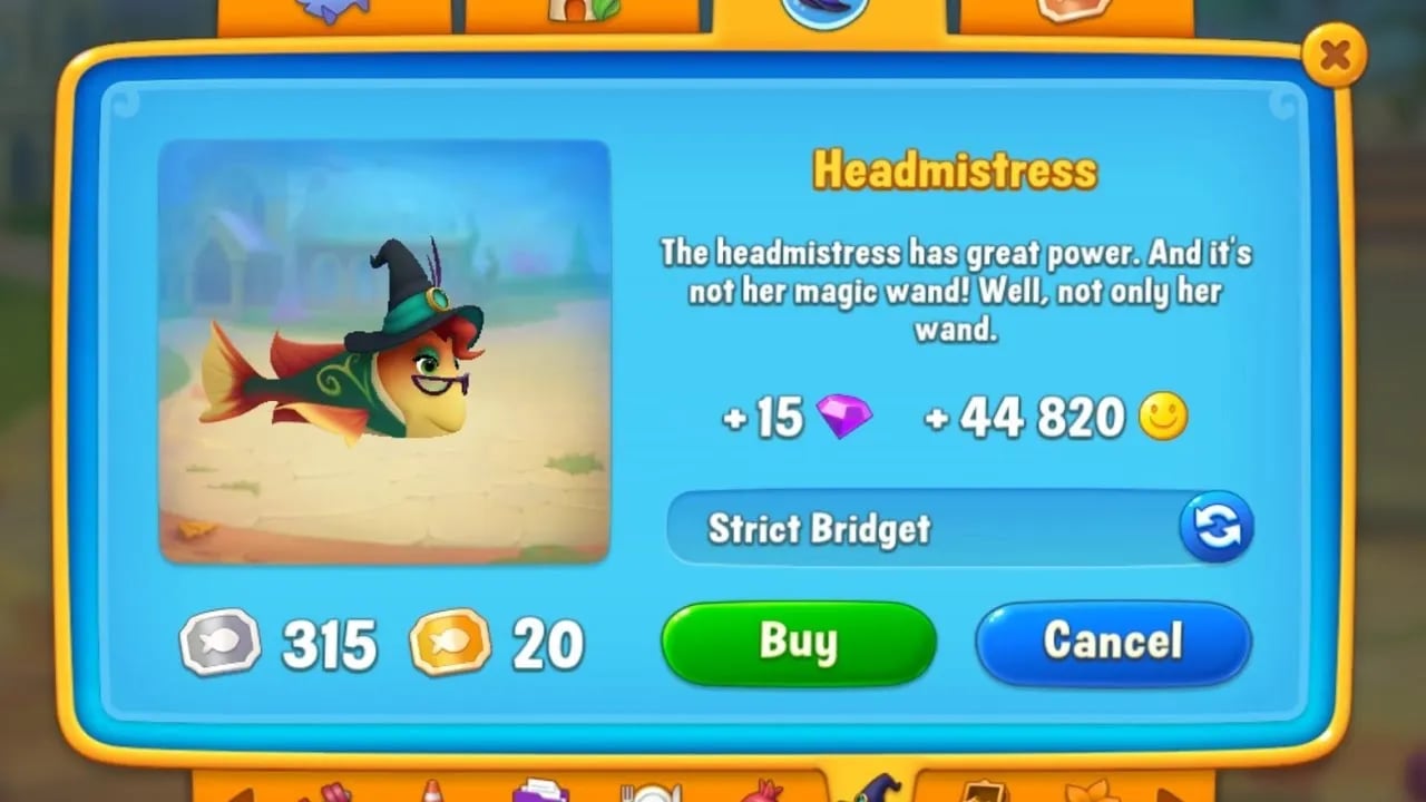 레벨 19부터 구매할 수 있는 몇몇 고레벨 독특한 물고기들은 15개의 다이아몬드를 제공합니다. 예를 들어, 교장 선생님 물고기: