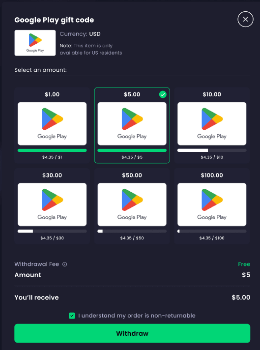 Google Play 기프트 카드를 출금할 준비가 되셨나요? 다음 5가지 간단한 단계를 따라 리워드를 받아가세요: