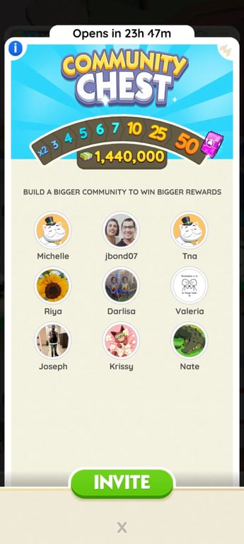 Om de kist met de hoogste beloningsvermenigvuldiger te openen, moet je succesvol op het Algemeen Fonds-vakje landen en vervolgens hulp krijgen van vrienden (die moeten inloggen en tikken om je te helpen).