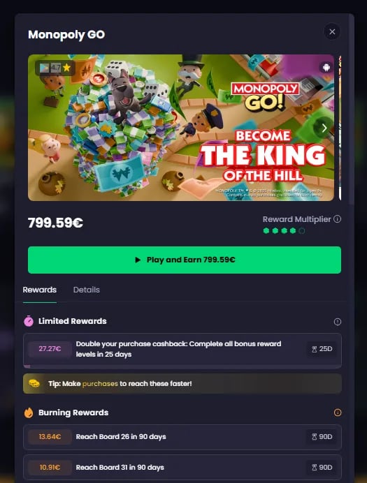 Voor een methode op lange termijn, speel Monopoly GO via Freecash om geld te verdienen, dat je vervolgens kunt gebruiken om gratis Sticker Bundels te kopen.