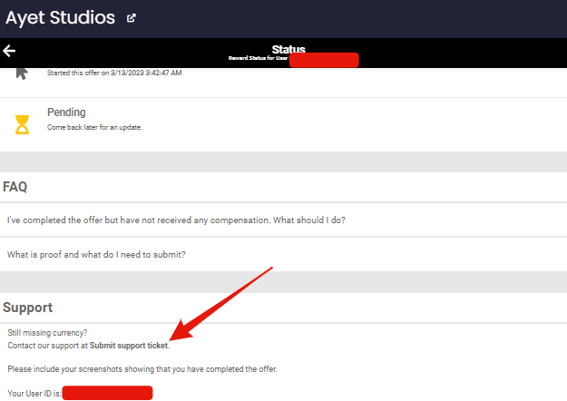 Als je problemen ondervindt met een aanbieding van Ayet Studios, kun je contact met hen opnemen via e-mail of volg deze stappen om een supportticket te openen: