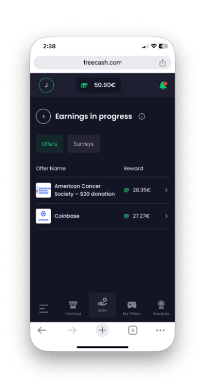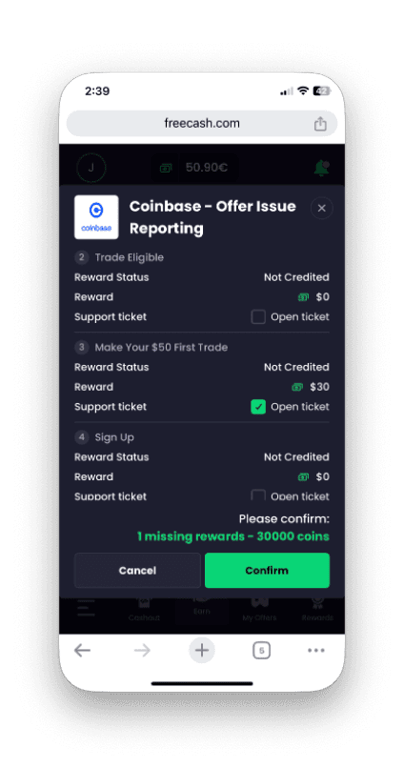 Freecash'e mobil cihazdan erişiyorsanız, destek bileti oluşturmak için şu adımları izleyin.