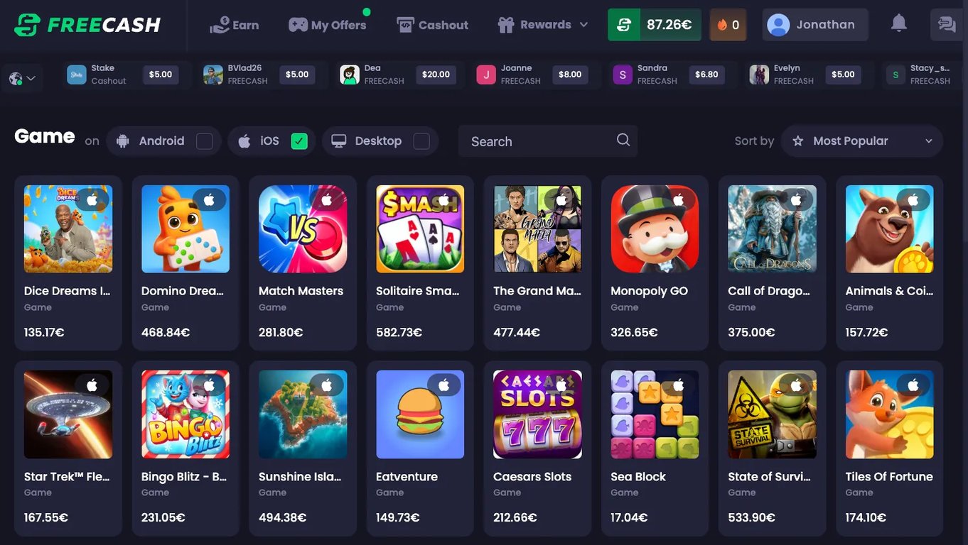 - Freecash Gelişmiş: Freecash.com'a erişen daha deneyimli kullanıcılara gelişmiş mod gösterilir, bu da platformdaki mevcut her teklifi görmelerini sağlar.